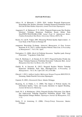 PENGARUH KUALITAS WEBSITE, KEPERCAYAAN, KUALITASPRODUK DAN HARGA TERHADAP KEPUTUSAN PEMBELIAN PRODUK FASHION WANITA PADA MEDIA SOSIAL ONLINESHOP DI KOTA PADANG Resma Yulita1, Irda2, Dahliana Kamener 3, 1,2,3 Jurusan Manajemen, Fakultas Ekonomi dan Bisnis Universitas Bung Hatta Email : resmayulita1995@gmail.com, irda1987@yahoo.comdahlianakamener@ymail.com Penelitian ini bertujuan untuk mengetahuipengaruh kualitas website, kepercayaan, kualitas produk dan harga terhadap keputusan pembelian produk fashion wanita pada media sosial onlineshop di kota padang. Poupulasi adalahsemua konsumen yang berbelanja produk fashion wanita pada media sosial onlineshop di Kota Padang tahun 2019 yang tidak diketahui dengan pasti jumlahnya, dengan jumlah sampel sebanyak 138 orang konsumen yang berbelanja produk fashion wanita Pada Media Sosial Onlineshop di Kota Padang. Teknik yang digunakan dalam pengambilan sampel adalah purposive sampling.Jenis data yang digunakan adalah data primer melalui penyebaran kuesioner. Metode analisa data yang digunakan adalah analisis regresi linear berganda. Uji hipotesis dengan menggunakan uji T-test statistik untuk membuktikan pengaruh variabel independen terhadap variabel dependen secara parsial atau individu. Hasil penelitian ini menemukan bahwa kualitas Website tidak berpengaruh terhadap keputusan pembelian produk fashion wanita.sedangkankepercayaan,Kualitas produk,dan harga berpengaruh positif terhadap keputusan pembelian produk fashion wanita. Kata Kunci : Kualitas Website, Kepercayaan, Kualitas Produk, Harga, Keputusan Pembelian