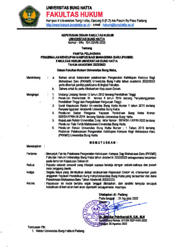 Deswita, Rosra SK PKKMB TERBARU. UNIVERSITAS BUNG HATTA.