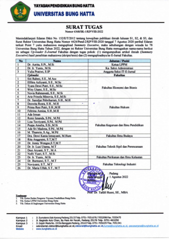 Deswita, Rosra Surat Tugas Uploader ES. UNIVERSITAS BUNG HATTA.