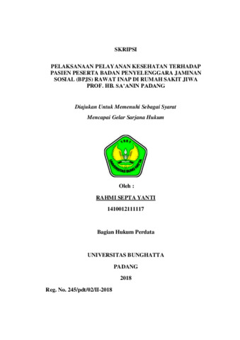 PELAKSANAAN PELAYANAN KESEHATAN TERHADAP PASIEN PESERTA BADAN PENYELENGGARA JAMINAN SOSIAL (BPJS) RAWAT INAP DI RUMAH SAKIT JIWA PROF. HB. SA’ANIN PADANG Rahmi Septa Yanti 1 , Syafril 1 , Adri 1 . 1 Prodi Ilmu Hukum Fakultas Hukum Universitas Bung Hatta. E-mail: rahmi.septa@gmail.com BPJS Kesehatan dibuat untuk meringankan biaya pengobatan masyarakat dari fasilitas pelayanan kesehatan dengan persyaratan membayar iuran kepada pihak BPJS setiap bulannya. Rumusan masalah: 1) Bagaimana pelaksanaan pelayanan kesehatan terhadap pasien peserta BPJS rawat inap di Rumah Sakit Jiwa Prof. HB. Sa’anin Padang? 2) Apa faktor-faktor hambatan pelaksanaan pelayanan kesehatan terhadap pasien peserta BPJS rawat inap di Rumah Sakit Jiwa Prof. HB. Sa’anin Padang? 3) Bagaimana upaya penyelesaian terhadap pasien peserta BPJS rawat inap di Rumah Sakit Jiwa Prof. HB. Sa’anin Padang. Jenis penelitian adalah yuridis empiris, sumber data dari data primer dan data sekunder. Teknik pengumpulan data diperoleh dari wawancara dan studi dokumen. Analisis data yang dilakukan adalah metode kualitatif. Dari hasil penelitian disimpulkan: 1) Pelaksanaan pelayanan kesehatan terhadap pasien BPJS rawat inap di Rumah Sakit Jiwa Prof. HB. Sa’anin Padang sudah bagus dan sesuai dengan standar operasional prosedur rumah sakit. 2) Faktor-faktor hambatan pelaksanaan pelayanan kesehatan disebabkan pasien tidak membayarkan premi yang menyebabkan dinonaktifkannya kartu BPJS oleh sisitem. 3) Upaya penyelesaian dari rumah sakit terhadap dinonaktifkannya pelayanan BPJS ialah memberikan waktu selama 3x24 jam untuk menyelesaikan kembali administrasi BPJS. Kata Kunci : Pelayanan, Kesehatan, BPJS, Rumah Sakit.