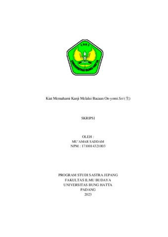 Saddam, Mu'amar and Syahrial, Syahrial (2023) Kiat Memahami Kanji Melalui Bacaan On-yomi Sei (生). Diploma thesis, Universitas Bung Hatta.