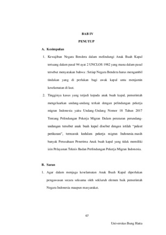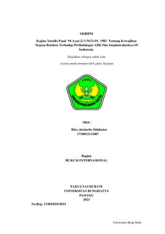 Rino, Juniardo Sidabutar and Dwi, Astuti Palupi (2023) Kajian Yuridis Pasal 94 Ayat (2) UNCLOS 1982 Tentang Kewajiban Negara Bendera Terhadap Perlindungan ABK Dan Implementasinya Di Indonesia. Diploma thesis, Universitas Bung Hatta.