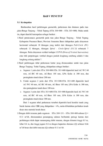 Syamsul Irsyad, Irsyad and Eva, Rita (2023) PERENCANAAN GEOMETRIK JALAN RAYA, TEBAL PERKERASAN LENTUR SERTA DRAINASE RUAS JALAN BUNGO TANJUNG – TELUK TAPANG (STA 380+000 - STA 385+000) KABUPATEN PASAMAN BARAT. Diploma thesis, UNIVERSITAS BUNG HATTA.