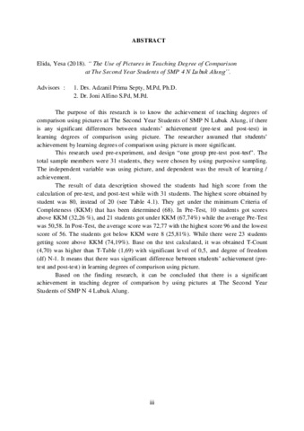 Yesa, Elida and Adzanil, Prima Septy and Joni, Alfino (2018) The Use of Pictures in Teaching Degree of Comparison at The Second Year Students of SMP 4 N Lubuk Alung. Diploma thesis, Universitas Bung Hatta.