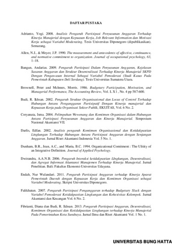 Penelitian ini bertujuan untuk menguji secara empiris pengaruh partisipasipenyusunan anggaran terhadap kinerja manajerial dengan ketidakpastian lingkungan,komitmen organisasi dan desentralisasi sebagai variabel moderating. Populasi yangdigunakan dalampenelitian ini adalah Kepala Subbagian, Kepala Bidang, dan Kepala Seksidi lingkungan Satuan Kerja Perangkat Daerah (SKPD) pada Pemerintahan Kota Padang.Penelitian ini menggunakan 35 sampel SKPD di Kota Padang periode Januari 2015sampai pertengahan Februari 2015. Sampel diseleksi dengan menggunakan metodepurposivesampling.Teknik analisis data yang digunakan untuk menguji hipotesis yaitu analisis MRA(Moderated Regression Analysis)dengan program SPSSversion 16.0 for windows.Hasil dari penelitian inimembukti bahwa: (1) Partisipasi Penyusunan Anggaranberpengaruh signifikan terhadap kinerja manajerial, (2) ketidakpastian lingungan sebagaivariabel moderating tidak berpengaruh signifikan dalam hubungan antara partisipasipenyusunan anggaran terhadap kinerja manajerial. (3) komitmen organisasi sebagai variabelmoderating tidak berpengaruh signifikan dalam hubungan antara partisipasi penyusunananggaran terhadap kinerja manajerial. (4) desentralisasi sebagai variabel moderatingberpengaruh signifikan dalamhubungan antara partisipasi penyusunan anggaran terhadapkinerja manajerial. Kata kunci : Partisipasi Penyusunan Anggaran, Kinerja Manajerial, KetidakpastianLingkungan, Komitmen Organisasi, Desentralisasi, Variabel Moderating