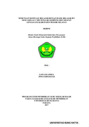 Lona, Islamiza and Muhammad, Sahnan and M., Tamrin (2017) HUBUNGAN MOTIVASI BELAJAR DENGAN HASIL BELAJAR IPS SISWA KELAS V SDN 28 PASAR GOMPONG KECAMATAN LENGAYANG KABUPATEN PESISIR SELATAN. Diploma thesis, UNIVERSITAS BUNG HATTA.