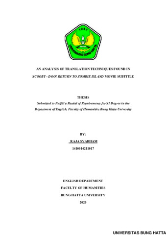 Raja, Syadham and Diana, Chitra Hasan and Nova, Rina (2020) An Analysis of Translation Techniques Found in Scooby-Doo! Return to Zombie Island Movie Subtitle. Diploma thesis, Universitas Bung Hatta.