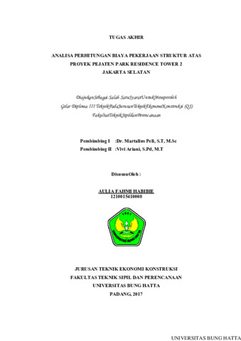 AULIA, FAHMI HABIBIE and Martalius, Peli and Vivi, Ariani (2017) ANALISA PERHITUNGAN BIAYAPEKERJAAN STRUKTUR ATAS PROYEK APARTEMEN PEJATEN PARK RESIDENCE TOWER 2. Diploma thesis, Universitas Bung Hatta.