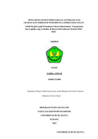 Zahra, Afifah and Meihendri, Meihendri (2023) PENGARUH UKURAN PERUSAHAAN, LEVERAGE, DAN UKURAN KAP TERHADAP INTEGRITAS LAPORAN KEUANGAN (Studi Empiris pada Perusahaan Sektor Infrastruktur, Transportasi, dan Logistik yang Terdaftar di Bursa Efek Indonesia Periode 2018-2022). Diploma thesis, Universitas Bung Hatta.