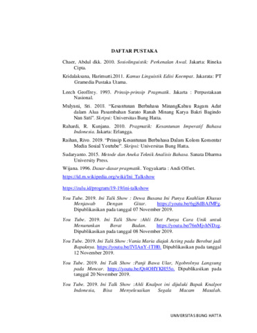Puji, Rafita and Elvina, A. Saibi and Endut, Ahadiat (2020) ANALISIS TUTURAN KESANTUNAN PADA ACARA INI TALK SHOW. Diploma thesis, Universitas Bung Hatta.