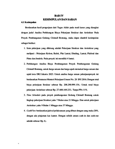 Oktariadi, Bil Qhauli and Wahyudi, P. Utama (2023) ANALISA PERHITUNGAN BIAYA PEKERJAAN STRUKTUR ATAS DAN ARSITEKTUR PROYEK PEMBANGUNAN CITIMALL BONTANG. Diploma thesis, UNIVERSITAS BUNG HATTA.