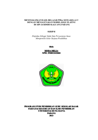 Dinda, Melia and Darwianis, Darwianis (2023) MENINGKATKAN HASIL BELAJAR PPKn SISWA KELAS V DENGAN MENGGUNAKAN MODEL ROLE PLAYING DI SDN 26 RIMBO KALUANG PADANG. Diploma thesis, Universitas Bung Hatta.