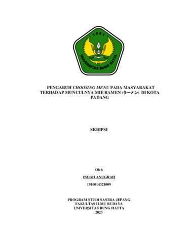 Anugrah, Indah and Irma, Irma (2023) Pengaruh Choosing Menu Pada Masyarakat Terhadap Munculnya Mie Ramen (ラーメン) di Kota Padang. Diploma thesis, Universitas Bung Hatta.