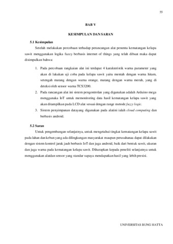 Putri, Ramadina and Arnita, Arnita and Hidayat, Dayat (2023) PERANCANGAN ALAT PENENTU KEMATANGAN BUAH KELAPA SAWIT MENGGUNAKAN LOGIKA FUZZY BERBASIS INTERNET OF THINGS. Diploma thesis, Universitas Bung Hatta.