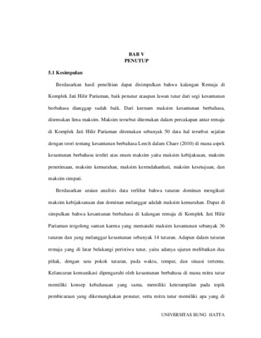 Widia, Wahyuni and Romi, Isnanda (2023) KESANTUNAN BERBAHASA DI KALANGAN REMAJA DI KOMPLEK JATI HILIR PARIAMAN. Diploma thesis, Universitas Bung Hatta.
