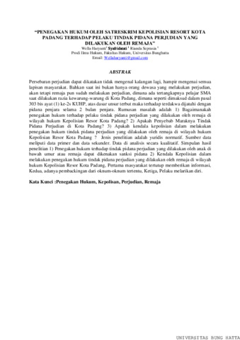 Persebaran perjudian dapat dikatakan tidak mengenal kalangan lagi, hampir mengenai semua lapisan masyarakat. Bahkan saat ini bukan hanya orang dewasa yang melakukan perjudian, akan tetapi remaja pun sudah melakukan perjudian, dimana ada tertangkapnya pelajar SMA saat dilakukan razia kewarung-warung di Kota Padang, dimana seperti dimaksud dalam pasal 303 bis ayat (1) ke-2s KUHP, atas dasar unsur terbut maka terhadap terdakwa dijatuhi dengan pidana penjara selama 2 bulan penjara. Rumusan masalah adalah 1) Bagaimanakah penegakan hukum terhadap pelaku tindak pidana perjudian yang dilakukan oleh remaja di wilayah hukum Kepolisian Resor Kota Padang? 2) Apakah Penyebab Maraknya Tindak Pidana Perjudian di Kota Padang? 3) Apakah kendala kepolisian dalam melakukan penegakan hukum tindak pidana perjudian yang dilakukan oleh remaja di wilayah hukum Kepolisian Resor Kota Padang ? Jenis penelitian adalah yuridis normatif. Sumber data meliputi data primer dan data sekunder. Data di analisis secara kualitatif. Simpulan hasil penelitian 1) Penegakan hukum terhadap tindak pidana perjudian yang dilakukan oleh anak di bawah umur atau remaja dapat dikenakan sanksi pidana 2) Kendala Kepolisian dalam melakukan penegakan hukum tindak pidana perjudian yang dilakukan oleh remaja di wilayah hukum Kepolisian Resor Kota Padang, Pertama masyarakat tertutup memberikan informasi, Kedua, adanya pembackingan dari oknum-oknum tertentu, Ketiga, Pelaku melarikan diri. Kata Kunci :Penegakan Hukum, Kepolisan, Perjudian, Remaja