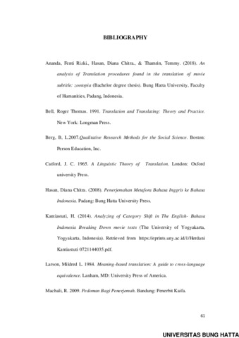 Hans, Wicaksana and Diana, Chitra Hasan and Nova, Rina (2020) AN ANALYSIS OF TRANSLATION SHIFT IN THE CHRONICLES OF NARNIA MOVIE BY C. S. LEWIS. Diploma thesis, Universitas Bung Hatta.