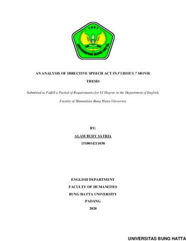 Alam, Budy Satria and Yusrita, Yanti and Temmy, Thamrin (2020) AN ANALYSIS OF DIRECTIVE SPEECH ACT IN FURIOUS 7 MOVIE. Diploma thesis, Universitas Bung Hatta.