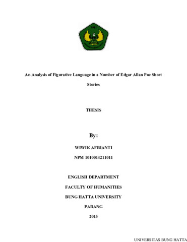 Wiwik, Afrianty and Yusrita, Yanti and Nova, Rina (2015) An Analysis of Figurative Language in a Number of Edgar Allan Poe Short Stories. Diploma thesis, Universitas Bung Hatta.