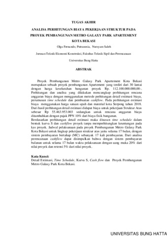 Olga, Fernando and Putranesia, Putranesia and Nursyam, Saleh (2020) ANALISA PERHITUNGAN BIAYA PEKERJAAN STRUKTUR PADA PROYEK PEMBANGUNAN METRO GALAXY PARK APARTEMENT KOTA BEKASI. Diploma thesis, Universitas Bung Hatta.