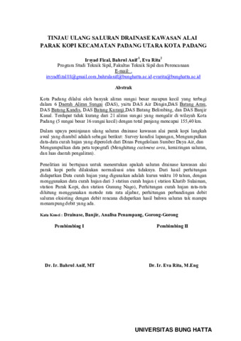 Irsyad, Fizal and Bahrul, Anif and Eva, Rita (2020) TINJAU ULANG SALURAN DRAINASE KAWASAN ALAI PARAK KOPI KECAMATAN PADANG UTARA KOTA PADANG. Diploma thesis, UNIVERSITAS BUNG HATTA.