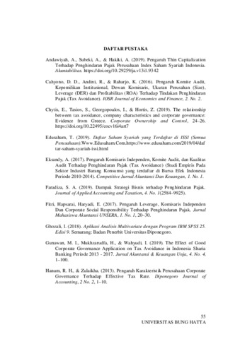 PENGARUH CORPORATE GOVERNANCE TERHADAP PENGHINDARAN PAJAK Yulita Nofri Yanti1, Resti Yulistia Muslim2, Daniati Puttri3 Jurusan Akuntansi Fakltas Ekonomi Dan Bisnis, Universitas Bung Hatta Email: yulitanofriyanti22@yahoo.com ABSTRAK Penelitian ini bertujuan untuk menguji secara empiris kepemilikan institusional, komisaris independen, komite audit, CEO duality berpengaruh terhadap penghindaran pajak. Data yang digunakan adalah data sekunder. Sampel penelitian ini adalah perusahaan syariah yang terdaftar di Jakarta Islamic Index (JII) tahun 2016-2019 dengan metode purposive sampling (menggunakan kriteria-kriteria). Uji hipotesis yang digunakan adalah regresi linear berganda. Hasil penelitian menunjukkan bahwa komisaris independen berpengaruh negatif terhadap penghindaran pajak, sedangkan kepemilikan institusional, komite audit, CEO duality tidak berpengaruh terhadap penghindaran pajak. Kata kunci : Kepemilikan Institusional, Komisaris Independen, Komite Audit, CEO Duality, Penghindaran Pajak. THE EFFECT OF CORPORAT