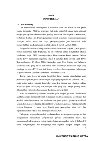 Aulia, Rifki and Nasfryzal, Carlo and Embun, Sari Ayu (2020) IDENTIFIKASI DAN PENILAIAN RISIKO KESELAMATAN DAN KESEHATAN KERJA PADA PROYEK PEMBANGUNAN HOTEL GRAND ZURI EXTENSION PADANG. Diploma thesis, UNIVERSITAS BUNG HATTA.