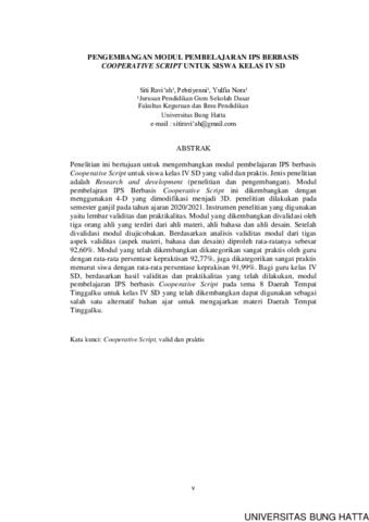 Siti, Ravi’ah and Pebriyenni, Pebriyenni and Yulfia, Nora (2020) PENGEMBANGAN MODUL PEMBELAJARAN IPS BERBASICOOPERATIVE SCRIPT UNTUK SISWA KELAS IV SD. Diploma thesis, Universitas Bung Hatta.