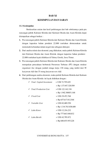 Pabrik kalsium klorida dari kalsium oksida dan asam korida ini dirancang dengan kapasitas produksi 22.000 ton/tahun dengan lokasi pabrik direncanakan di kawasan Kecamatan Tuban, Kabupaten Gresik, Provinsi Jawa Timur. Pabrik ini beroperasi selama 300 hari per tahun. Proses produksi yang digunakan adalah proses netralisasi untuk mengkonversi Kalsium Oksida dan Asam Klorida menjadi Kalsium Klorida. Kalsium Klorida yang dihasilkan kemudian dilakukan pengeringan dengan menggunakan rotary dryer, sehingga mencapai kemurnian 98%. Pabrik ini merupakan perusahaan yang berbentuk Perusahaan Terberbatas (PT) dengan struktur organisasi “line and staff”, dan mampu menyerap tenaga kerja sebanyak 130 orang. Massa konstruksi pabrik direncanakan selama 6 tahun. Hasil analisa ekonomi pada rancangan pabrik Kalsium Klorida ini menunjukkan bahwa pabrik ini layak didirikan dengan jumlah total investasi yang dibutuhkan Rp. 729.679.770.037,6 yang diperoleh dari pinjaman bank 50% dan 50% modal sendiri. Laju pengembalian modal (ROR) sebesar 58,79%, waktu pengembalian modal 2 tahun 2 bulan 8 hari dan Break Event Point (BEP) sebesar 44,66 %.