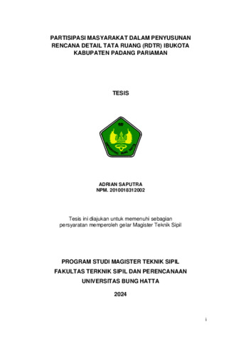 Adrian, Saputra and Dwifitra, Y Jumas and Bahrul, Anif (2024) PARTISIPASI MASYARAKAT DALAM PENYUSUNAN RENCANA DETAIL TATA RUANG (RDTR) IBUKOTA KABUPATEN PADANG PARIAMAN. Masters thesis, Universitas Bung Hatta.