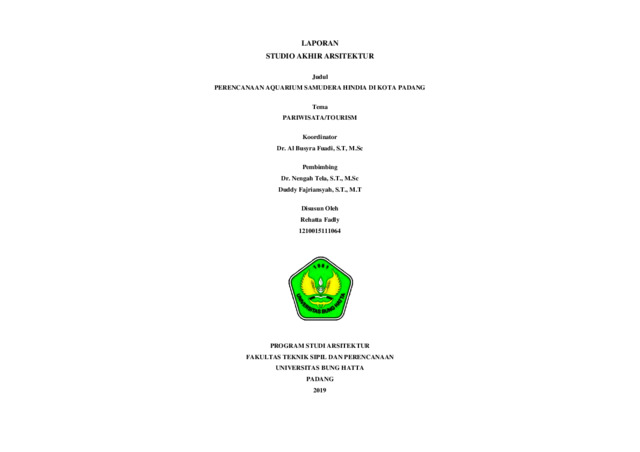 Rehatta, Fadly and Nengah, Tela and Duddy, Fajriansyah (2020) PERENCANAAN AQUARIUM SAMUDERA HINDIA DI KOTA PADANG. Diploma thesis, UNIVERSITAS BUNG HATTA.