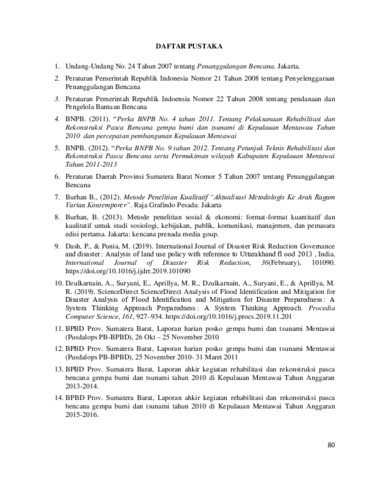 Suryadi, Eviontri (2020) TINJAUAN KEBIJAKAN RELOKASI DAN PELAKSANAAN PEMBANGUNAN HUNIAN TETAP (HUNTAP) PADA KEGIATAN PASCA BENCANA GEMPA BUMI DAN TSUNAMI TAHUN 2010 DI KEPULAUAN MENTAWAI. Diploma thesis, UNIVERSITAS BUNG HATTA.