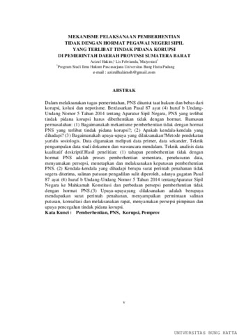 Azizul, Hakim and Lis, Febrianda and Maiyestati, Maiyestati (2021) MEKANISME PELAKSANAAN PEMBERHENTIAN TIDAK DENGAN HORMAT PEGAWAI NEGERI SIPIL YANG TERLIBAT TINDAK PIDANA KORUPSI DI PEMERINTAH DAERAH PROVINSI SUMATERA BARAT. Diploma thesis, UNIVERSITAS BUNG HATTA.