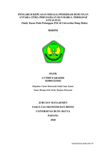 PENGARUH KEPUASAN SEBAGAI PEMEDIASI HUBUNGAN ANTARA CITRA PERUSAHAAN DAN HARGA TERHADAP LOYALITAS (Study Kasus Pada Pelanggan JNE di Universitas Bung Hatta) Luthfi Faradisi1. Reni Yuliviona S.E., M.M2. Ice Kamela S.E., M.M3 Jurusan Manajemen, Fakultas Ekonomi Dan Bisnis, Universitas Bung Hatta E-mail: 23luthfifaradisi@gmail.com ABSTRAK Penelitian ini menguji hubungan antara pengaruh Citra Perusahaan, Harga, terhadap Loyalitas Pelanggan dengan Kepuasan sebagai variabel intervening (Study Kasus Pada Pelanggan JNE di Universitas Bung Hatta). Responden dalam penelitian ini adalah mahasiswa pengguna jasa JNE yang bertempat tinggal, kost/tinggal dengan orang tua di padang. Penelitian ini menggunakan rumus Slovin karena dalam penarikan sampel, jumlahnya harus representative agar hasil penelitian dapat digeneralisasikan dan perhitungannya pun tidak memerlukan tabel jumlah sampel, namun dapat dilakukan dengan rumus dan perhitungan sederhana. dengan jumlah mahasiswa Universitas Bung Hatta kurang lebih sebanyak 9235 mahasiswa. Peneliti menggunakan persentase kelonggaran 10%, hasil perhitungan dengan menggunakan teknik slovin yaitu: 98,9. Peneliti menyesuaikan jumlah sampel menjadi 100 orang responden. Pengumpulan data primer menggunakan kuesioner dan Pengambilan sampel ini dilakukan dengan teknik insindental. Hasil penelitian menunjukkan bahwa hipotesis 1)citra perusahaan berpengaruh positif terhadap kepuasan pelanggan. 2)citra perusahaan tidak berpengaruh terhadap loyalitas pelanggan. 3)harga tidak beperngaruh terhadap kepuasan pelanggan. 4)harga berpengaruh positif terhadap loyalitas pelanggan. 5)kepuasan pelanggan berpengaruh positif terhadap loyalitas pelanggan. 6)kepuasan pelanggan berpengaruh positif sebagai pemediasi antara citra perusahaan dan loyalitas pelanggan. 7)kepuasan pelanggan tidak berpengaruh sebagai pemediasi antara harga dan loyalitas pelanggan. Hipotesis yang paling dominan yaitu H1, pengaruh citra perusahaan terhadap kepuasan pelanggan, hal ini di tandai dengan adanya nilai T-statistik paling tinggi yaitu sebesar 7.428 dan P values 0.000 paling rendah dari 4 variabel. Kata kunci : Citra perusahaan, Harga, Loyalitas Pelanggan, Kepuasan Pelanggan