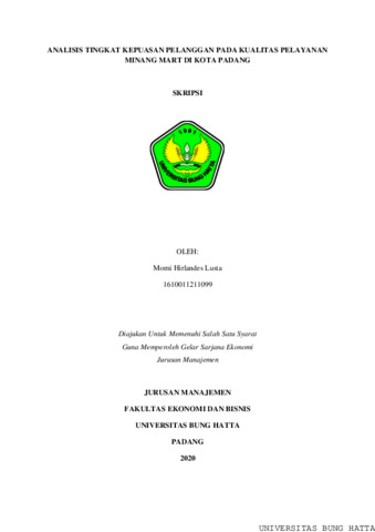ANALISIS KEPUASAN PELANGGAN PADA KUALITAS PELAYANAN MINANG MART DI KOTA PADANG 1Momi Hirlandes Lusta, 2Dahliana Kamener, 3Irda 1Mahasiswa Jurusan Manajemen, Fakultas Ekonomi dan Bisnis Universitas Bung Hatta 2Dosen Jurusan Manajemen, Fakultas Ekonomi dan Bisnis Universitas Bung Hatta E-mail : momilusata@gmail.com, dahlianakamener@bunghatta.ac.id, irda@bunghatta.ac.id ABSTRAK Tujuan penelitian ini adalah untuk mengetahui “Tingkat Kepuasan Pelanggan Pada Kualitas Pelayanan Minang Mart di Kota Padang”. Teknik pengambilan sampel adalah purposive sampling dengan jumlah Sampel 138 orang. Jenis data yang digunakan adalah data primer melalui penyebaran kuesioner. Metode analisis data yang digunakan yaitu Analisis Deskriptif, Analisis Importance Performance, dan Diagram Kartesius. Hasil penelitian ini menunjukkan bahwa pelanggan belum merasakan kepuasan yang maksimal pada kelima dimensi kualitas pelayanan yaitu bukti fisik (Tangibles), Empati (Empathy), Kehandalan (Reliability), Daya Tanggap (Responsiveness), dan Jaminan (Assurance). Kata kunci : Kepuasan, Kualitas Pelayanan