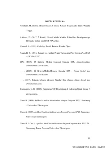 ANALISIS FAKTOR – FAKTOR YANG MEMPENGARUHI PENDAPATAN PETANI MISKIN DI KECAMATAN SINTUK TOBOH GADANG KABUPATEN PADANG PARIAMAN Multi Lora, Antoni 1, Helmawati 2, Fakultas Ekonomi Universitas Bung Hatta Email: Multi.lora@gmail.com toni819975@gmail.com Helmapadang@yahoo.co.id ABSTRAK Faktor – faktor penyebab kemiskinan petanidiKecamatan Sintuk Toboh Gadang cukup beragam, yaitu luas lahan, tingkat penddikan dan jumlah tanggungan. Tujuan Penelitianini adalah untuk mengetahui 1) pengaruh luas lahan terhadap pendapatan petani 2) pengaruh tingkat pendidikan terhadap pendapatan petani 3)pengaruh jumlah tanggungan terhadap pendapatan petani. Penelitian ini dilakukan di Kecamatan Sintuk Toboh Gadang Kabupaten Padang Pariaman, metode yang digunakan dalam penelitian ini adalah Purposive sampling. Pengumpulan data dalam penelitian ini adalah dengan menggunakan metode kuesioner, wawancara dan observasi, dengan teknik analisis yang digunakan adalah analisis regresi linier berganda. Berdasarkan analisis yang digunakan hasil analisis data yang dilakukan ditemukan hasil : 1) terdapatnya pengaruh positif dan signifikan antara luas lahan terhadap pendapatan petani. 2) terdapatnya pengaruh positif dan signifikan antara tingkat pendidikan terhadap pendapatan petani 3) terdapatnya pengaruh positif dan signifikan antara jumlah tanggungan terhadap pendapatan. Kata kunci : Pendapatan petani, luas lahan, tingkat pendidikan dan jumlah tangunggan.