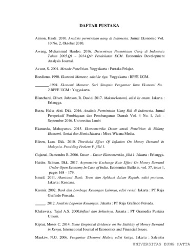 Dita, Novirisna and Alvis, Rozani and Kasman, Karimi (2021) ANALISIS FAKTOR – FAKTOR YANG MEMPENGARUHI PERMINTAAN UANG DI INDONESIA. Diploma thesis, Universitas Bung Hatta.