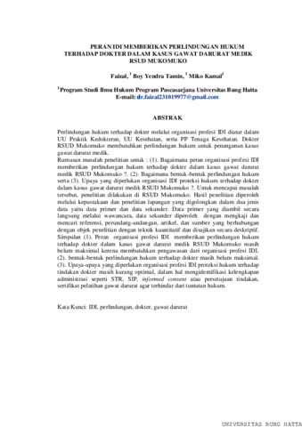 Faizal, Faizal and Boy, Yendra Tamin and MIKO, KAMAL (2021) PERAN IDI MEMBERIKAN PERLINDUNGAN HUKUM TERHADAP DOKTER DALAM KASUS GAWAT DARURAT MEDIK RSUD MUKOMUKO. Diploma thesis, UNIVERSITAS BUNG HATTA.