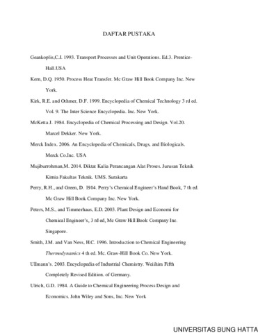 KHOIRUNNISA, KHOIRUNNISA and Firdaus, Firdaus and Elmi, Sundari (2021) PRARANCANGAN PABRIK ETILEN GLIKOL DARI ETILEN OKSIDA DAN AIR DENGAN KAPASITAS 350.000 TON/TAHUN. Diploma thesis, Universitas Bung Hatta.