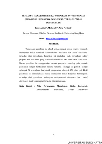 Tessy, Afriati and Meihendri, Meihendri and Neva, Novianti (2021) PENGARUH MANAJEMEN RISIKO KORPORASI, ENVIRONMENTAL DISCLOSURE DAN SOCIAL DISCLOSURE, TERHADAP NILAI PERUSAHAAN. Diploma thesis, Universitas Bung Hatta.