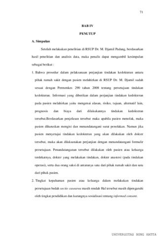 Efri, Karmila Chandra and Darmini, Roza and Uning, Pratimaratri (2021) TINGKAT PEMAHAMAAN PASIEN DALAM PELAKSANAANPERSETUJUAN TINDAKAN KEDOKTERAN DALAM OPERASI BEDAH SECTIO CAESAREA (SC)MENURUT PERMENKES NOMOR 290 TAHUN 2008 DI RUMAH SAKIT UMUM PUSAT DR M DJAMIL PADANG. Masters thesis, UNIVERSITAS BUNG HATTA.