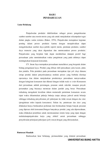Widya, Ariska and Ayu, Bidiawati Jr and Lestari, Setiawati (2021) PENJADWALAN PRODUKSI JOB SHOP MENGGUNAKAN METODE ALGORITMA JADWAL NON DELAY DAN METODE HEURISTIC SCHEDULE GENERATIONDI CV. INSAN JAYA. Diploma thesis, UNIVERSITAS BUNG HATTA.