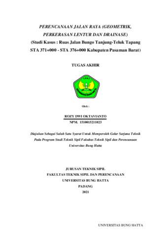 Rozy, Dwi Oktavianto and Eva, Rita and Indra, Khaidir (2021) PERENCANAAN JALAN RAYA (GEOMETRIK, PERKERASAN LENTUR DAN DRAINASE) STUDI KASUS : RUAS JALAN BUNGO TANJUNG – TELUK TAPANG STA 371+000 - STA 376+000 KABUPATEN PASAMAN BARAT. Diploma thesis, Universitas Bung Hatta.