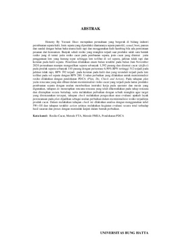 Rizky, Ananta Permana Poetra and M. Nursyaifi, Yulius (2021) Analisa Meminimalisir Risiko Defect Pada Pembuatan Sepatu Menggunakan Metode Fault Tree Analysis (FTA) Dan Failure Mode And Effect Analysis (FMEA). Diploma thesis, Universitas Bung Hatta.