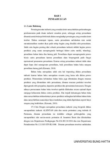 NOVIA, LESTARI and Lestari, Setiawati (2021) ANALISIS PENGENDALIAN PERSEDIAAN BAHAN BAKU PLAT BESI PADA PRODUK HYDROTILLER DI CV. CITRA DRAGON PARIAMAN. Diploma thesis, Universitas Bung Hatta.
