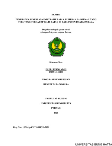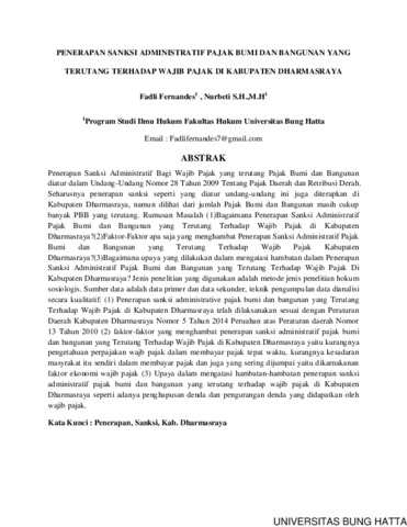 Fadli, Fernandes and Nurbeti, Nurbeti (2021) PENERAPAN SANKSI ADMINISTRATIF PAJAK BUMI DAN BANGUNAN YANG TERUTANG TERHADAP WAJIB PAJAK DI KABUPATEN DHARMASRAYA. Diploma thesis, Universitas Bung Hatta.
