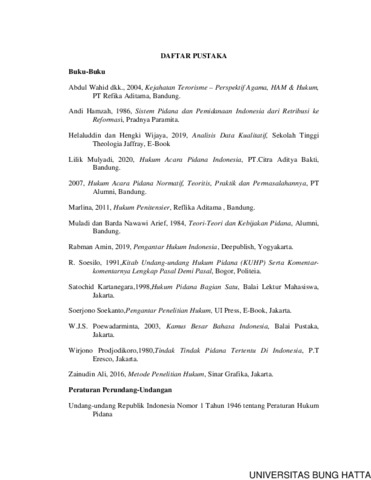 Gita, Putri Mongery and Deaf, Wahyuni Ramadhani (2021) PERTIMBANGAN HAKIM DALAM MENJATUHKAN PIDANA MATI TERHADAP PELAKU TINDAK PIDANA TERORISME (STUDI PUTUSAN NOMOR140/Pid.Sus/2018/PN.Jkt.Sel). Diploma thesis, Universitas Bung Hatta.