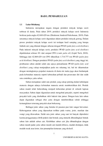 Lukman, Hakim and Elmi, Sundari and Firdaus, Firdaus (2021) PRARANCANGAN PABRIK SABUN CAIR BERAROMA KAYU MANIS DARI PFAD DENGAN KAPASITAS PRODUKSI 20.000 TON/TAHUN. Diploma thesis, UNIVERSITAS BUNG HATTA.