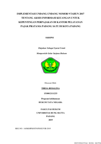 THESA, ROSALINA and Maiyestati, Maiyestati and Suamperi, Suamperi (2021) IMPLEMENTASI UNDANG-UNDANG NOMOR 9 TAHUN 2017 TENTANG AKSES INFORMASI KEUANGAN UNTUK KEPENTINGAN PERPAJAKAN DI KANTOR PELAYANAN PAJAK PRATAMA PADANG SATU DI KOTA PADANG. Diploma thesis, UNIVERISTAS BUNG HATTA.