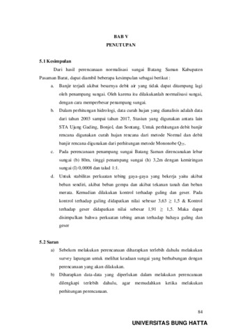Yusuf, Maulana Adrino and Nazwar, Djali and Veronika, Veronika (2021) PERENCANAAN NORMALISASI SUNGAI BATANG SAMAN STUDI KASUS NAGARI AIA GADANG. Diploma thesis, UNIVERSITAS BUNG HATTA.